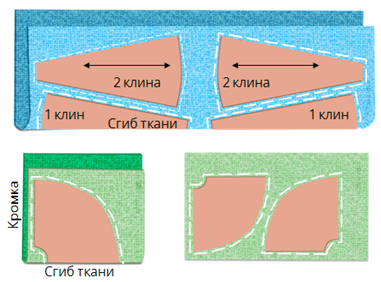 А так можно разложить на ткани лекала клиньевой и конической юбок.