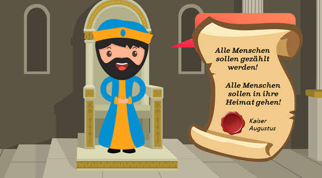 In der Zeit von Josef und Maria gibt es einen Kaiser. Der Kaiser heißt Augustus. Kaiser Augustus herrscht über viele Länder. Er herrscht auch über das Land Israel.
