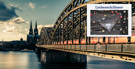 Der Kölner Dom ist die populärste Sehenswürdigkeit Deutschlands. Neben dem Kölner Dom befindet sich die Hohenzollernbrücke.