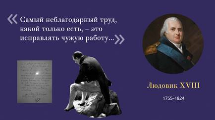 «Самый неблагодарный труд, какой только есть, – это исправлять чужую работу». Говорил Людо̀вик XVIII.