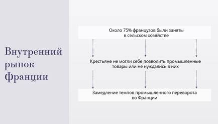 С другой стороны, Франция имела узкий внутренний рынок. Около 75% французов были заняты в сельском хозяйстве.
