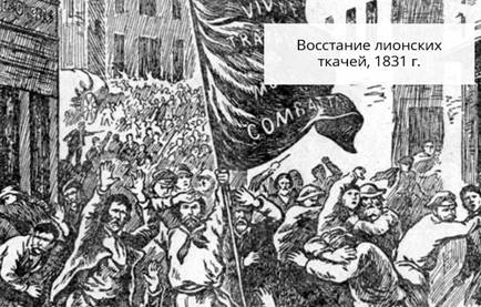 Особенно острыми столкновениями стали восстания ткачей в Лионе в 1831 и 1834 годах.