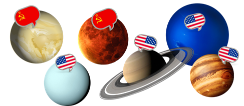Not just satisfied with the Moon both of the super powers wanted to explore the rest of the Solar system. Unmanned probes were sent to visit the Solar system, to other planets and moons. Voyages to Venus and Mars were made by the Soviet spaceships, voyages to Uranus, Jupiter, Neptune and Saturn – by the American spaceships.