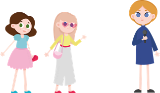 Reporter: Hallo, Mädchen! Das ist die Fernsehsendung „Die Deutschen“. Wir nehmen ein Interview über die Bücher. Sagt bitte, lest ihr die Bücher?