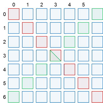 Рассмотрим несколько определений. Квадратной матрицей называется матрица, в которой количество строк равно количеству столбцов. Элементы квадратной матрицы, у которых номер строки равен номеру столбца, называются её главной диагональю. Противоположная главной диагонали линия элементов называется побочной диагональю. В ней номер строки элемента равен разности размерности матрицы, уменьшенной на единицу, и номера столбца элемента.