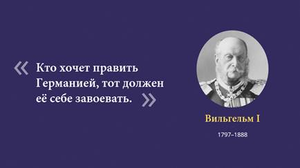 «Кто хочет править Германией, тот должен её себе завоевать». Вильгельм I.