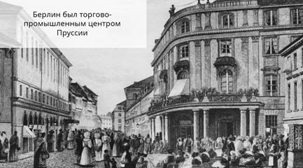 Торгово-промышленным центром этого региона был Берлин, столица Пруссии. В 1846 году в нем проживало около четырёхсот тысяч человек, из которых 70 тысяч были наёмными работниками на фабриках.
