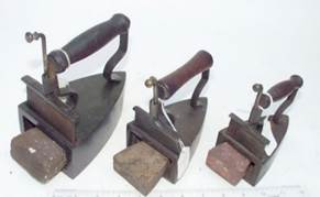 Затем были придуманы утюги со сменным вкладышем, который раскаляли, выхватывали из огня специальным прутом и вставляли внутрь полого корпуса.