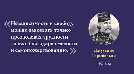 «Независимость и свободу можно завоевать, только преодолевая трудности, только благодаря смелости и самопожертвованию». Джузѐппе Гариба̀льди.