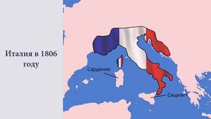 В 1806 году почти вся территория Италии стала владениями Наполеона. Исключение составляли только Сардиния и Сицилия.