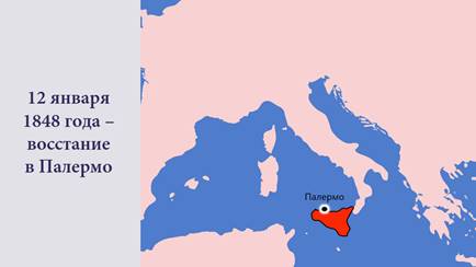 В 1848 году в Италии началась революция. 12 января началось восстание в Палѐрмо, на острове Сицилия. Народ выходил на улицы, где раздавали оружие. Сигналом к началу восстания стал церковный набат.