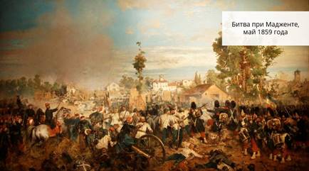 В мае 1859 года войска союзников разбили австрийцев в битве при Маджѐнте. 24 июня в битве при Сольферѝно нанесли окончательное поражение Австрии.
