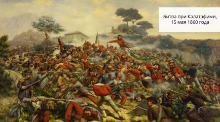 Первая серьёзная битва произошла у Калатафими. Неаполитанцев разбили, а к армии стали присоединяться местные жители. Когда Гарибальди прибыл в Палермо его «тысяча» превратилась в 10 тысяч.