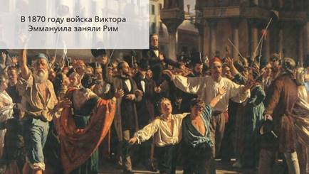 В 1871 году было завершено объединение Италии, королём стал Виктор Эммануил, а столицей город Рим.