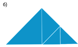 б) один большой треугольник, один средний треугольник и два маленьких треугольника.