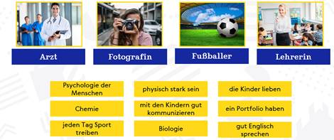 Uwe: Für die Berufswahl ist Interesse wichtig. Ich interessiere mich für Sport, für Fußball, denn ich will Fußballer werden. Man muss physisch stark sein, denn ich treibe jeden Tag Sport. Ein großer Vorteil dieses Berufs ist viel Geld und die Möglichkeit, andere Länder zu besuchen. Das finde ich toll.