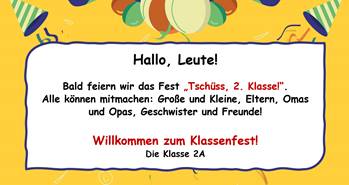 3. Wie lädt die Klasse 2A zum Fest ein?