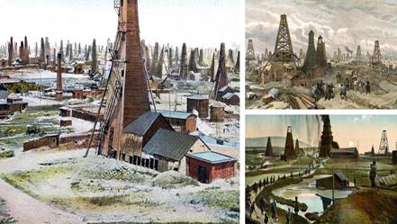 Менделеев осмотрел нефтяные промыслы и предложил брать нефть из более глубоких слоёв. Также он разработал систему перегонки нефти в специальных баках.