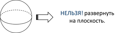 А вот особенностью сферы является, то, что её нельзя развернуть на плоскость.