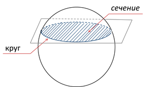 Если шар разрезать, то фигура, образованная на срезе, есть круг. Сам же срез называют сечением.