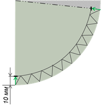 И нам осталось сделать зубчики (клапаны), с помощью которых мы будем крепить (приклеивать) эту деталь к корпусу ракеты. Для этого мы отложим вот от этих двух уголков по 10 миллиметров в сторону прямого угла и поставим риски. Соединим риски плавно изогнутой линией так, чтобы ширина получившейся полоски была равна 10 миллиметрам. Изобразим по длине всей этой полоски зубчики (клапаны).