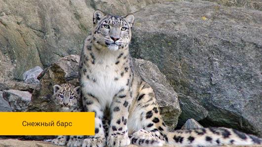Снежный барс. Также его называют ирбис. Эта ловкая мускулистая кошка с невероятно длинным и пушистым хвостом отлично адаптирована к жизни в суровых условиях. Длинный хвост помогает снежному барсу удерживать равновесие во время прыжка.
