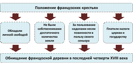 Труднее всего жилось крестьянам. В 1770-х годах их насчитывалось 22 миллиона от всего 25-миллионного населения Франции. Крестьяне обладали личной свободой, но не были собственниками достаточного количества земли. За пользование наделами они несли повинности в пользу своего сеньора. Платили налоги церкви и государству. Во второй четверти XVIII века такая ситуация привела к массовому обнищанию деревни.