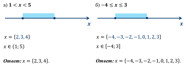 Задание: найдём все целые числа, удовлетворяющие неравенствам.