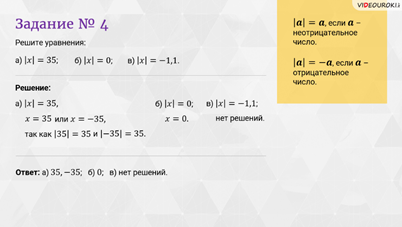 – неотрицательное число. Модуль отрицательного числа равен противоположному числу.