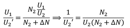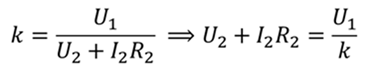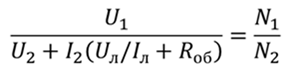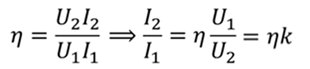 Запишем КПД трансформатора с учётом записанных формул и выразим соотношение токов в обмотках трансформатора