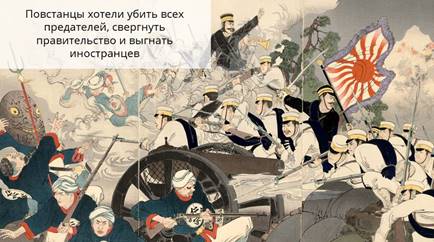 Восставшие считали, что правительство, которое допустило появление иностранцев в стране, не заслуживает доверия и не имеет права на управление Японией. У них не было чёткой программы действий.