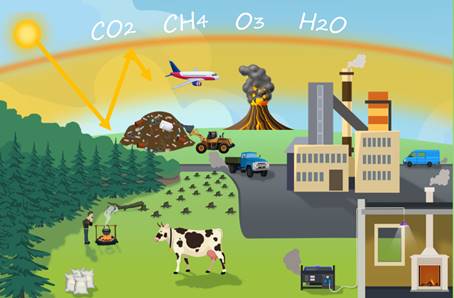 Well-known and common sources of green-house gases include the burning of fossil fuels, animal and plant respiration and volcanic eruptions. Other, less known sources include agriculture and landfills.