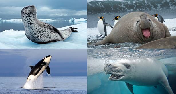 Акватория у побережья Антарктиды заселена морскими млекопитающими: это синий кит, кашалот, кит-горбач, касатка. Здесь вы встретите несколько видов тюленей, каждый из которых имеет свою территорию. Например, морской слон живёт на суше, морской леопард и тюлень-крабоед – в поясе плавучих льдов.