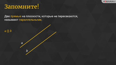 Запомните! Две прямые на плоскости, которые не пересекаются, называют параллельными.
