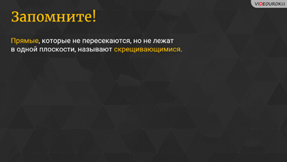 – Верно, – сказал Мудряш. – Запомните! Прямые, которые не пересекаются, но не лежат в одной плоскости, называют скрещивающимися.