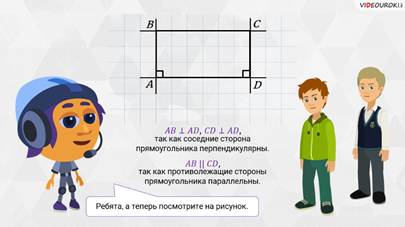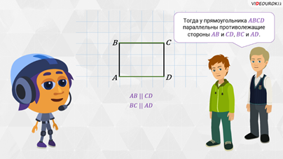 противолежащие стороны прямоугольника параллельны. Тогда можем сформулировать