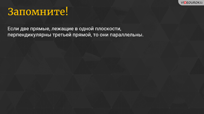 Запомните! Если две прямые, лежащие в одной плоскости, перпендикулярны третьей прямой, то они параллельны.