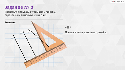 параллельны ли прямые, можно с помощью угольника и линейки. Возьмём угольник и