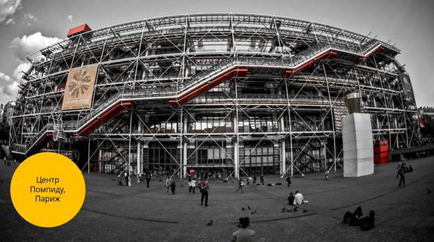 В 1970-е годы в архитектуре зародилось направление хай-тек, или высокие технологии. При строительстве использовались сложные технические конструкции, каркасы, трубы.