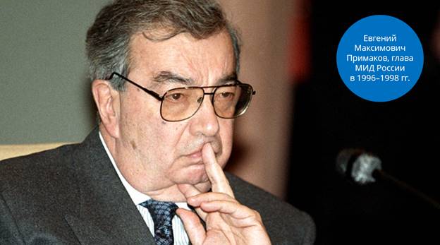 Расширение сотрудничества России со странами Азии, а также Африки, Латинской Америки началось после 1996 года. Оно было связано с назначением на пост министра иностранных дел Евгения Максимовича Примакова.