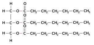 Значит, в результате реакции этерификации образуется жир, состоящий из остатка трёхатомного спирта глицерина и трёх остатков высших карбоновых кислот.