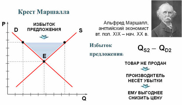 Каким же образом в этих условиях достигается хоть какое-то равновесие? Для объяснения того, как это происходит, воспользуемся графической моделью, которую называют «крестом» или «ножницами Маршалла». Название дано по фамилии известного британского экономиста второй половины девятнадцатого – начала двадцатого века Альфреда Маршалла.