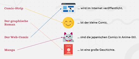 2. Man unterscheidet einige Comicarten. Was bedeuten sie? Ordnet zu!