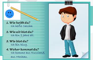 1. Hallo! Ich heiße Michael Hoffmann! Ich bin 8 Jahre alt. Ich komme aus Deutschland, aus Köln. Ich bin lustig. Tschüss!
