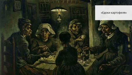 На творчестве Ван Гога всегда отражалось его душевное состояние и происходящие вокруг события. Картины, написанные им в Нидерландах, наполнены гнетущей атмосферой. Художник остро воспринимал страдания людей. Быт семьи показан на картине «Едоки картофеля». Безысходностью веет от картины «Старая церковная башня в Нюэнене».